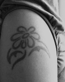 Tělo jí zdobí 3 krásná tetování - kytička na levém rameni, kterou si sama navrhla, dále sluníčko na břiše a upravené slunce z aztéckého kalendáře na lýtku.
